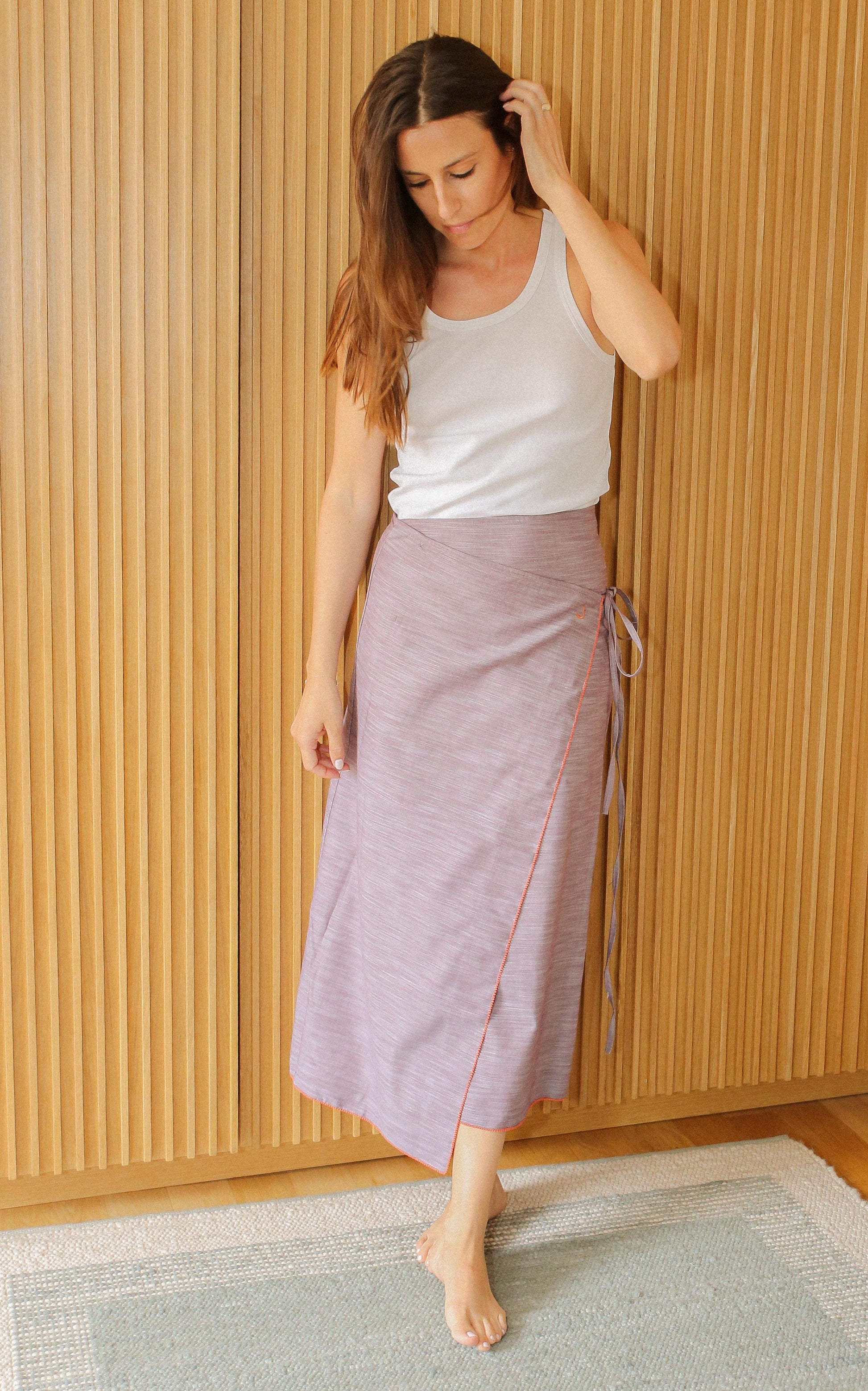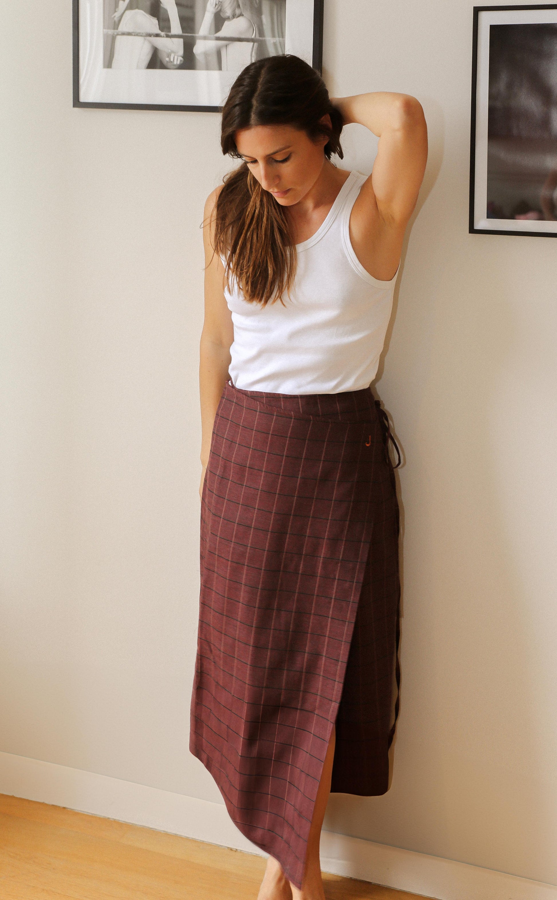 Peut se porter sans bouton pour un effet jupe crayon ou avec les boutons pour effet asymétrique.